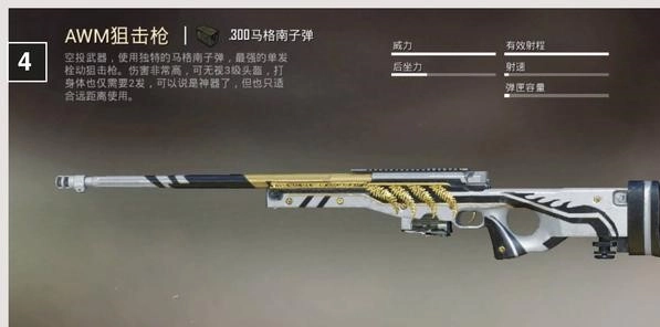 狙击枪的关键类型有几种,像AWM、Kar98k、M24和Win94都在其中。想来大家都清楚,AWM绝对是最强的狙击枪,它是唯一从空投里出现的狙击枪,而且伤害最高,哪怕是三级头,只要被它命中头部,也只需一发子弹就能击倒。M24曾经也有过辉煌的时期,不过自从被移出空投后,性能就下降了不少;98K则是最常见的狙击枪;至于Win94就没什么可说的了,甚至性能还比不上霰弹枪。
