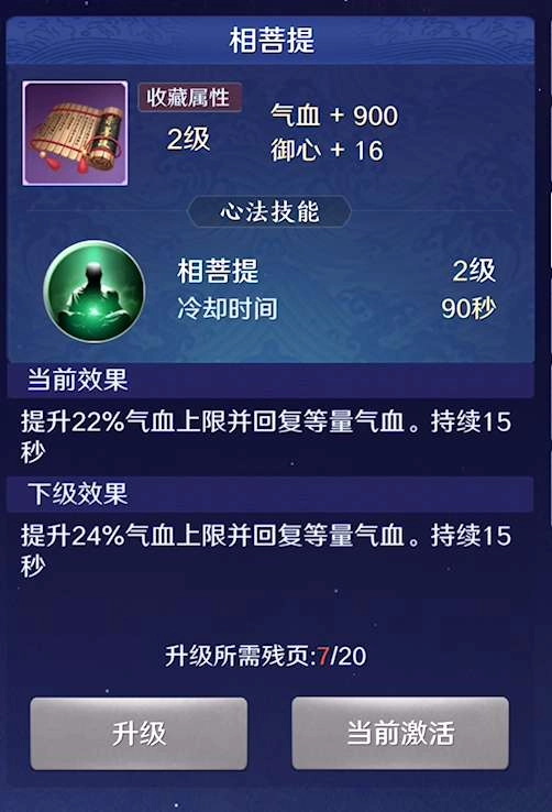 3、相菩提:一定时间内提升22%气上限,并持续回复等额的气血。