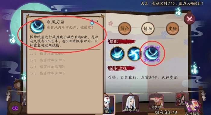 除了冥蝶之外,疾风同样是个十分好用的阴阳术,特别是对鬼切而言,连续两个回合的攻击说不定能把敌方全体消灭,这样就能顺利通过第八层了。