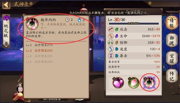 聊起桃花妖,就不得不说说阴阳术的搭配选择。哪怕阎魔她们能限制复活效果,桃花妖持续回血的能力也依旧很棘手。因此阴阳术可以选神乐的冥蝶,它不仅能显著降低桃花妖的治疗量,还能有概率对敌方单位施加控制效果。