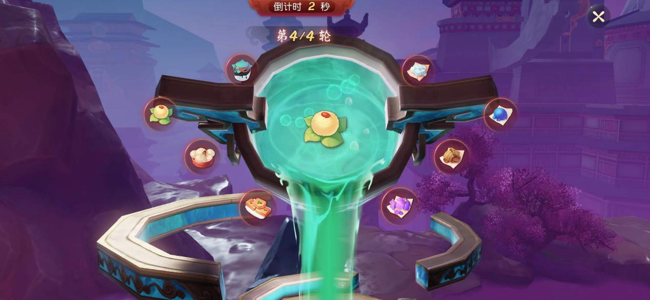 第二步,在解决完那些闹事的鬼怪后,由于这一步没有自动寻路功能,玩家得手动跟随NPC傅紫殷,这样才能进入地府。进入后找到孟婆并与她对话,按照提示熬制一锅孟婆汤就行——具体操作是根据界面中间的图标提示,在周围找到与之相同的物品即可。