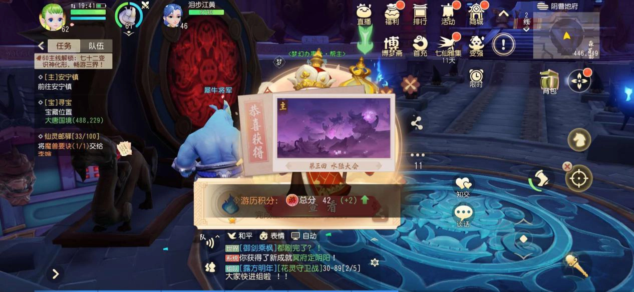 第六步,击败龙王后会开启拼图任务,每个拼图部件都支持360°自由旋转,只要角度和位置都匹配,就能拖入对应的缺口完成拼接。拼图完成后前往寻找崔判官,40级主线任务便正式结束,玩家可在该环节获得丰厚的经验奖励。