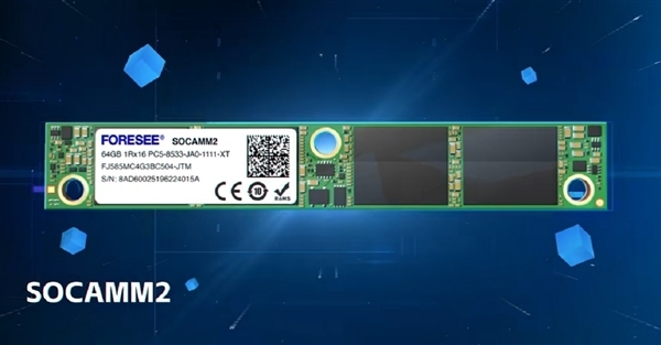SOCAMM2标准定义了一种基于LPDDR5、LPDDR5X的矮版、可替换和升级的内存,可提供更高带宽、更低功耗、更好扩展性。