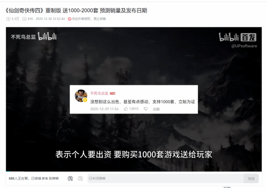 前3DM总监不死鸟评价道:这款作品的表现远超预期,出色得让人有些感动,他明确表示会支持1000套,还特意发帖为证,并且发布了一条视频,称要赠送1000到2000套给玩家。