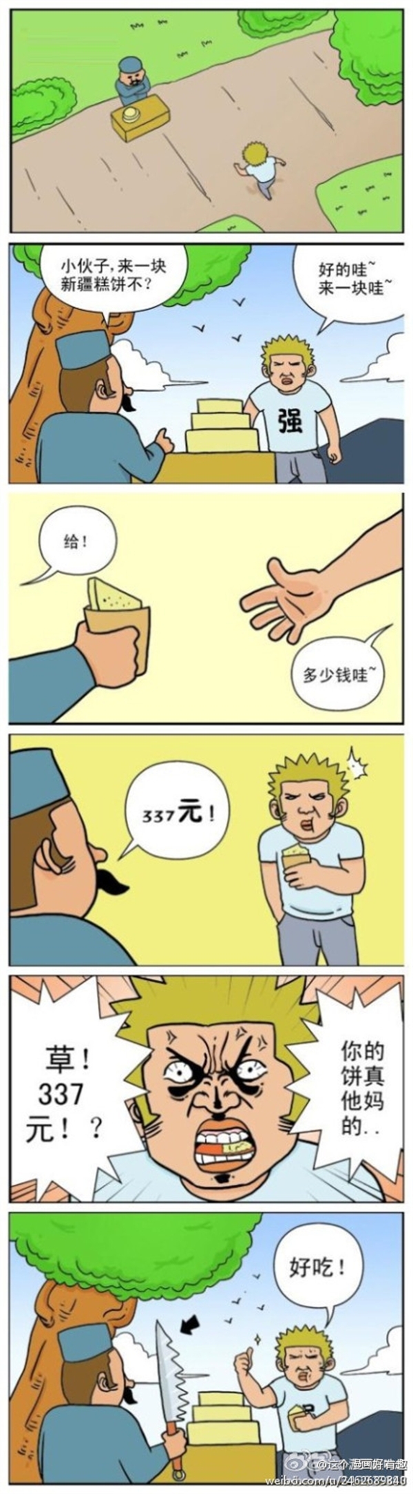 卖糕点时,要是你只比划着要多少,或者说切一小块尝尝,他就斜着下刀——刚开始切口看着挺窄,越往下切越大。等你喊停,他就“啊啊”地装听不懂,等终于停下,一看分量,最少也有半斤。要是你明确说要多少分量,他又装听不懂普通话。你问他多少钱一斤,他说8块,可切完算账时,却说8块是一两的价。你要是不买,马上就会有三四个人围上来,说这糕点切下来就没法卖了,非要你买走不可。