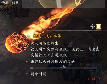 任务描述:钦天司外惊现戾妖发动袭击,速前往支援钦天卫,将戾妖击退!
