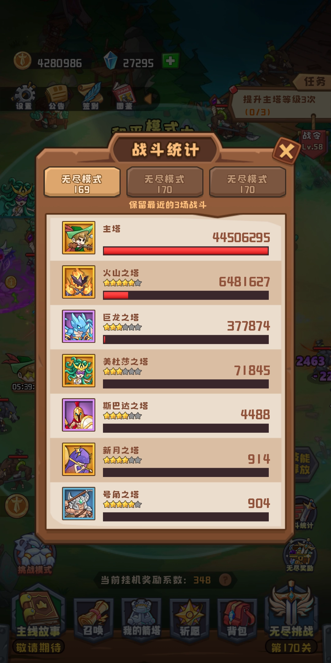 附上一张无尽169的输出截图(群攻伤害高属于正常现象,别认为火山和巨龙没作用)