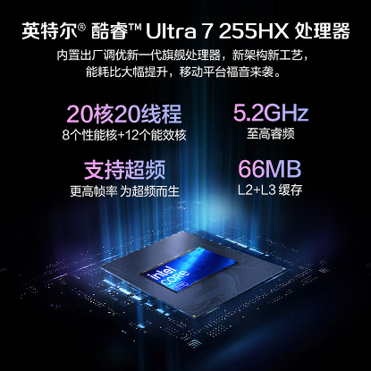 这款设备配备了英特尔酷睿Ultra 7 255HX处理器,具备8个性能核心与12个效能核心,构建成20核20线程的强劲硬件组合。其最高睿频可达到5.2GHz,L2与L3缓存的总容量为66MB,不管是运行游戏还是进行内容创作,都能够提供卓越的计算性能。