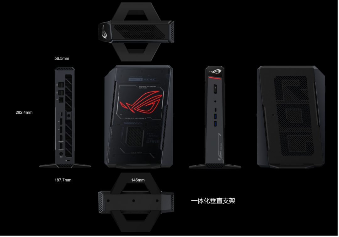 ROG NUC RTX 5060版本的体积仅为3升,具体尺寸是282.4mm×187.7mm×56.5mm,重量大约3.12kg,不过它的性能和传统大型台式机相比却毫不逊色。