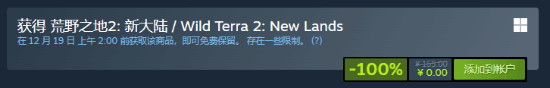 白嫖党们看过来!最近,由Juvty Worlds开发并发行的奇幻类MMORPG《荒野之地2:新大陆》,在Steam平台开启了限时免费领取活动。这款原价165元的游戏,目前可以免费入库,活动到12月19日就结束了,感兴趣的小伙伴可别错过这次机会!