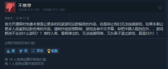 俗话说得好:我可以不玩,但我不能没有。这款硬核沙盒MMO虽然比较“肝”,对网络的要求也不低,但毕竟是免费领取的喜加一,先收入库中肯定不亏。大家会在意把这类“稍有不足”的游戏放进库存吗?