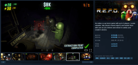 在瑞典首都斯德哥尔摩,有一家工作室开发了《REPO》这款游戏,它在2025年Steam平台所有游戏的总销量中占比达到3%,目前该游戏在Steam上已有26.9万条评测。