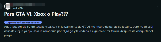 因为《GTA6》首发基本不会登陆PC平台,最近有位PC玩家发帖询问建议,说自己打算专门买一台主机来玩这款游戏,等通关之后就把主机留给家人用。不过他很快就纠结起来了,还仔细列了两个主机平台的优缺点,但还是拿不定主意。