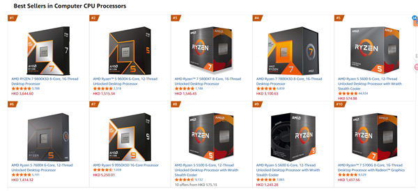 近日,亚马逊英国站的CPU销量排行榜上,搭载Zen 3架构的锐龙7 5800X出人意料地战胜了所有新款处理器,成功登顶榜首。