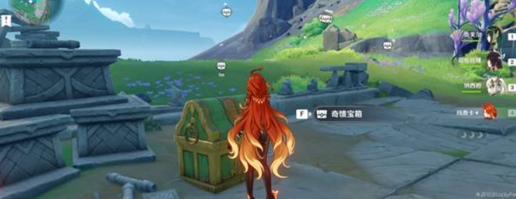 在此处获取附近獭懒羊身上的种核,并引导它们朝着月凝壁障发起冲击,让壁障融解后就能解锁奇馈宝箱了。