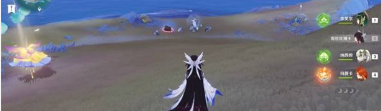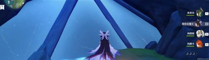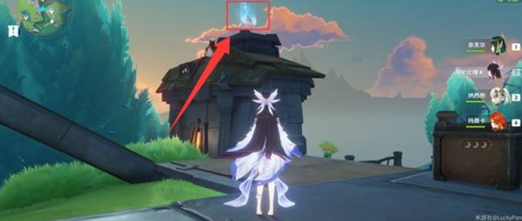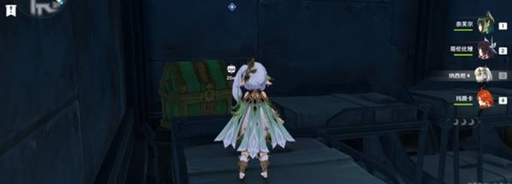 在此处靠近月灵让它跟着你,等它出现后收集所有月之微粒,就能触发奇馈宝箱的出现了。