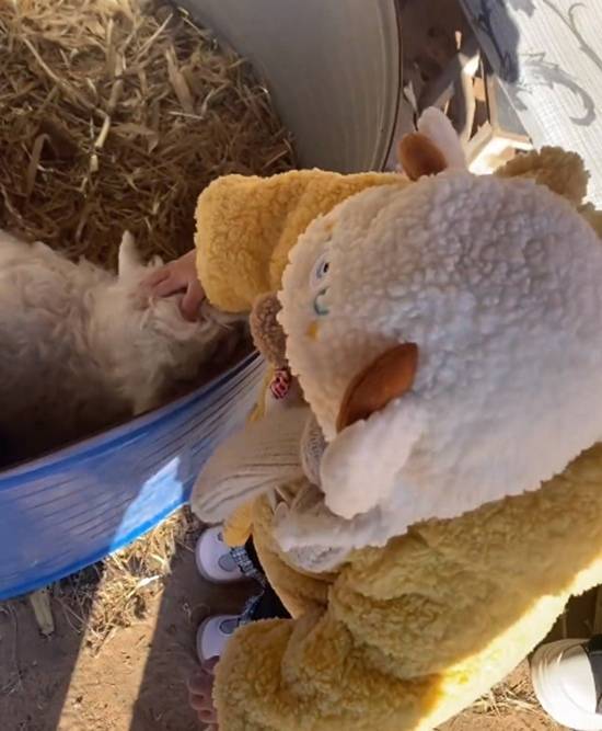 有意思的是,这只小羊羔对小朋友格外友善,当孩子们轻柔地抚摸它时,它会特别温顺,既不抗拒,也不会装死,和面对大人时简直是两只羊。