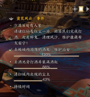 任务说明:诚邀各位仙友踏入红尘,助力当地居民完成打酒之事,驱离醉鬼,清扫风沙,守护康藏布戈的安宁!