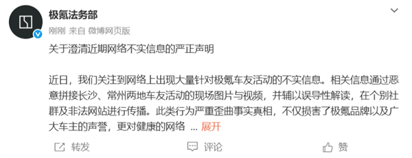 为还原事实真相,保障极氪用户与品牌的合法权益,特此严正声明如下: