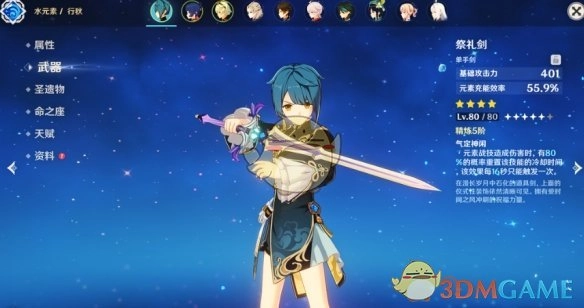 - 充能武器:祭礼剑、西风剑,若前期没有四星充能武器,也可用飞天御剑。