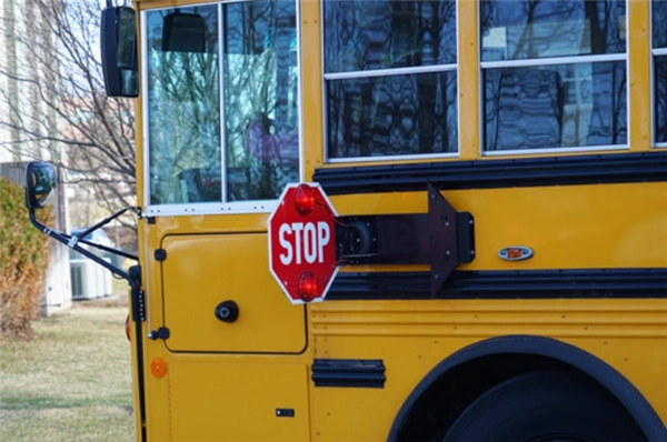 依据美国的交通规则,在校车开启红色警示灯且伸出停车臂的情况下,所有途经的车辆都得马上停下,绝对不允许超车。