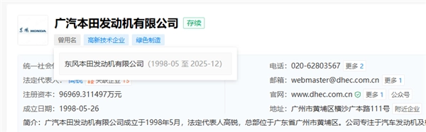 2025年8月,广汽本田斥资超11亿元,收购了东风汽车所持有的东风本田发动机厂50%的股份;随后,本田将自身持有的该厂另外50%股份作价入股,至此,这家原本专门为广汽本田供货的东本发动机厂被收编,成为了广汽本田的全资子公司。