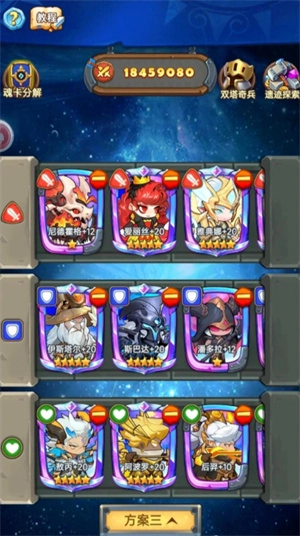 魂卡搭配方面,新手阶段建议采用“阿修罗”(负责控制)、“俄里翁”(主打爆发)与“丘比特”(承担治疗)的组合,这套搭配兼顾均衡性与实用性。