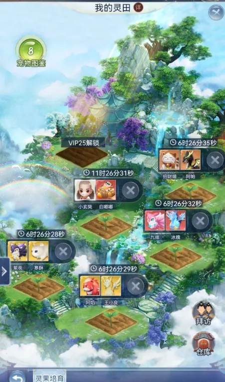 在家园的灵田中,每日都能获取灵种。只需一键派遣伙伴,就能让种子发育为果实。高级果实可产出白金元魂与金色伙伴碎片。不仅如此,还能够邀请朋友或者去拜访朋友,一同培育灵种,从而获取更为丰厚的灵果奖励。