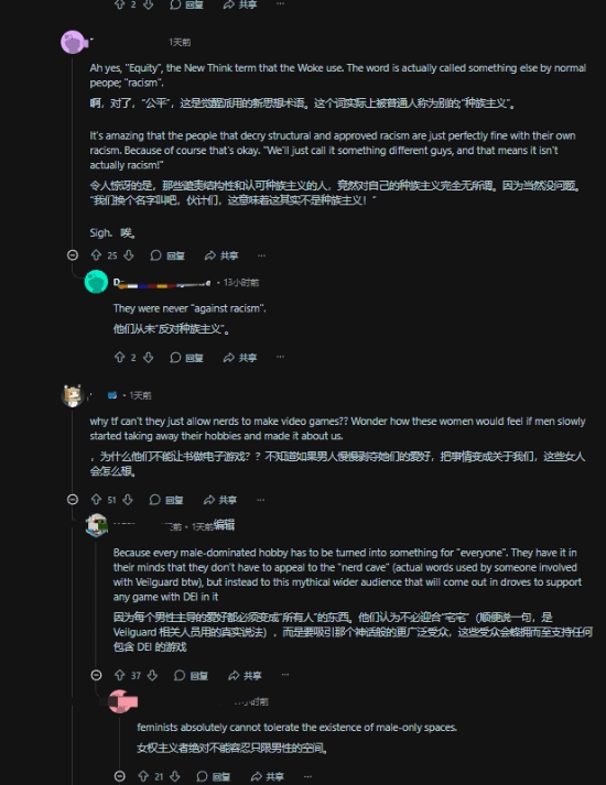 玩家的不满情绪主要聚焦于游戏的视觉呈现效果以及工作室对外公开宣扬的内部政策,他们担忧这些方面或许会对游戏的最终品质造成负面影响。从游戏发布的预告片和实机演示内容来看,不少玩家对女主角的外形设计表达了强烈的失望,同时男性角色走路的姿态也被批评为“过于女性化”,诸如此类的问题引发了玩家的讨论。