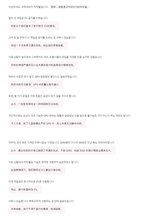 1月28日消息,近日索泰ZOTAC韩国通过其官方TagTag Mall账号发布了一则最新通知,提醒称显卡的供应状况正持续恶化。