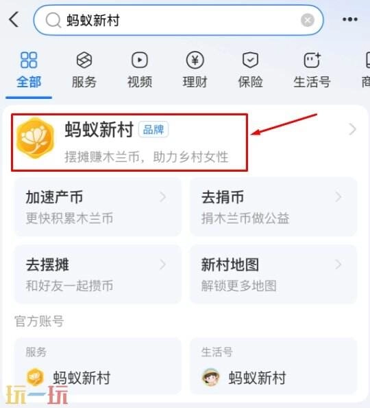 步骤一:进入支付宝,搜索蚂蚁新村点击进入。