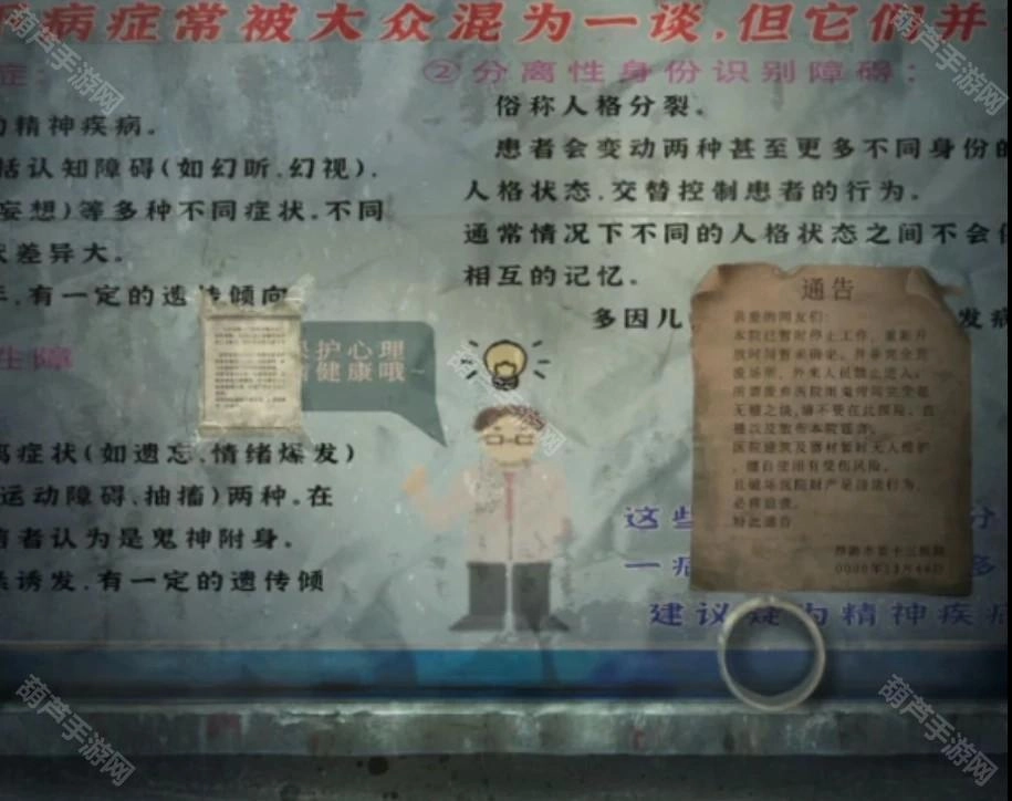 短暂的剧情过后直接开始解谜啦,首先点一下床会自动移动到喇叭下面,查看一下右上角喇叭需要胶带,左边的吧台上拿到圆珠笔,旁边的蟾蜍提示肚子里有东西,查看一下后面公告栏,剧情过后一定要记得拿右下角胶带哦!随便查看一下两个通知都是剧情道具,再次查看右上角的喇叭使用胶带会提示去取药口取药,点一下右边的取药处窗口就能直接拿到催吐剂。