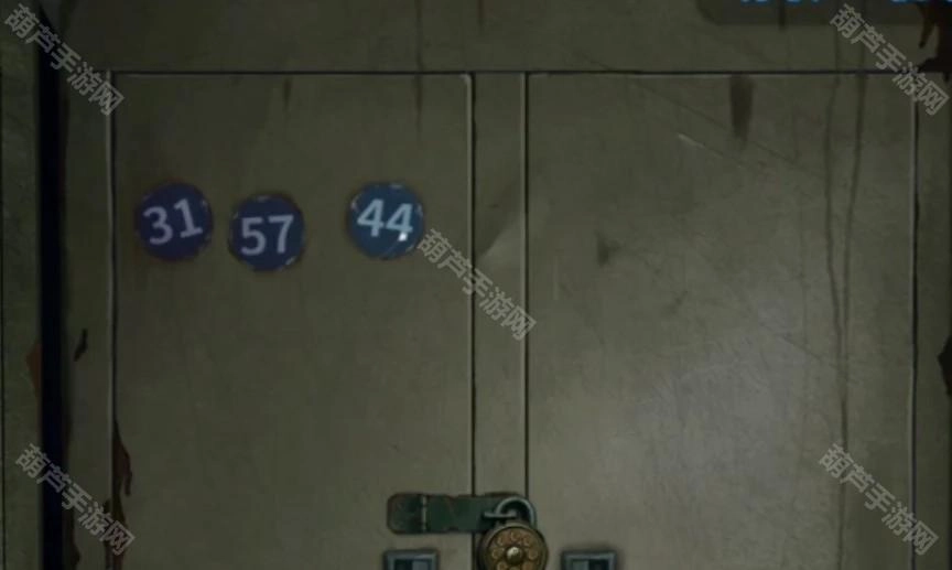 再次查看左边的柜子,按照31-57-44上面的鬼画符顺序依次点击,也就是最下-最上-右中-右下,打开柜子拿到了破电风扇,既然有鱼线也有电风扇,就把这两个都放在右边的架子上交给假人吧,注意假人有小高能,剧情后木偶就消失了,倒是给个线索啊!外面墙上写着不要回头,那我们偏不,回头看探望室左边的柜子发现右边柜门打开了,拿到57号钥匙和一根白蜡烛。