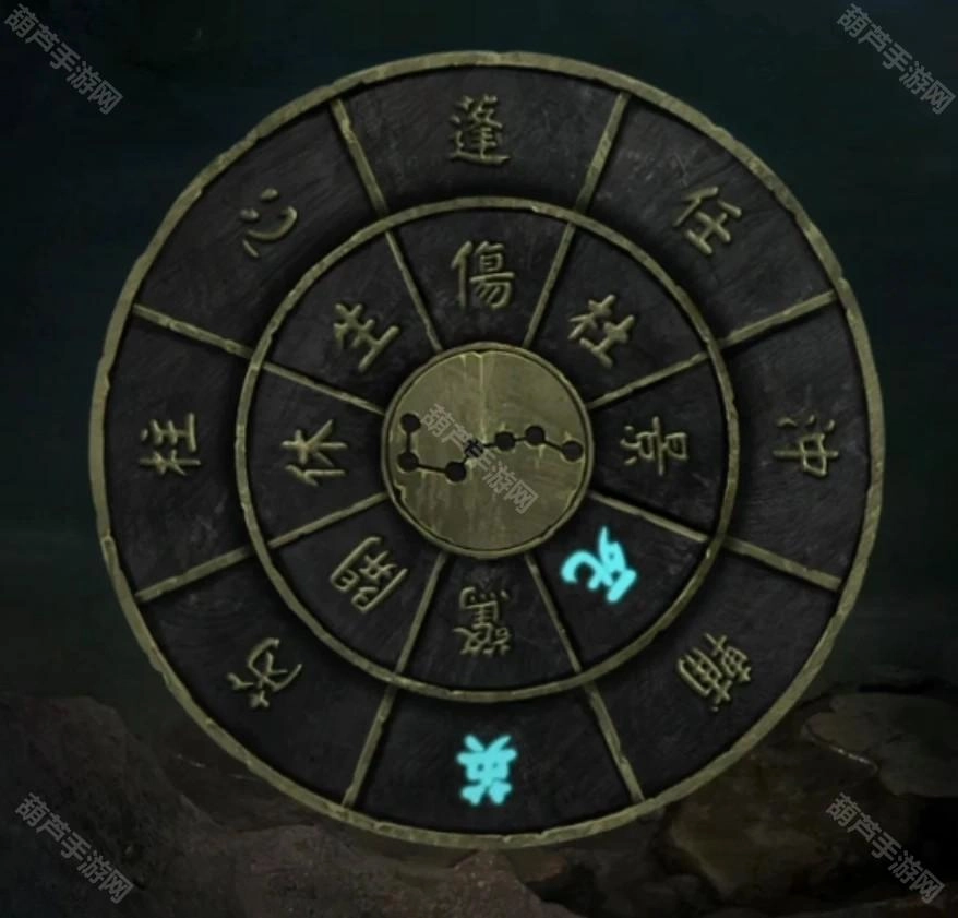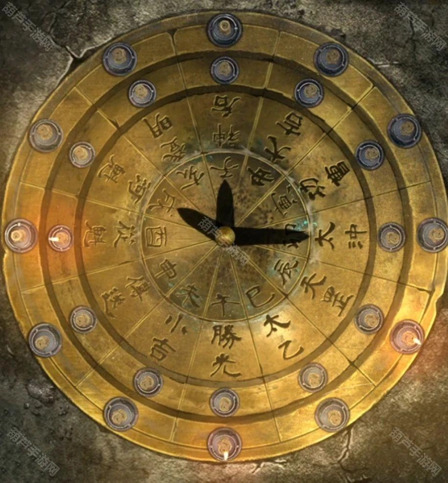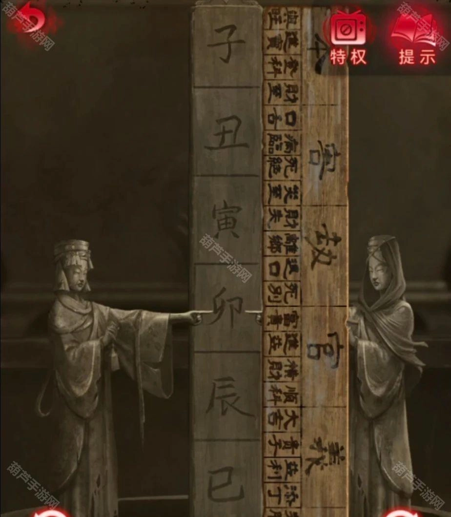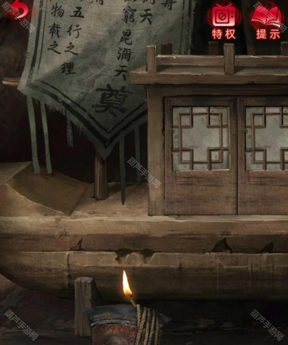 查看一下左边的石壁,把单人旁放在山的旁边组成谷中仙人言卜事,完成后仙人就飞升了,留下一行新的文字,重点就是河魁和戌辰,这肯定又是调整时间的关键了,上楼龙房间先熄灭之前的蜡烛,然后点左上角外圈和右下角内外圈蜡烛让阴影指在河魁和戌辰上,果然来到了新的时间节点,看剧情。