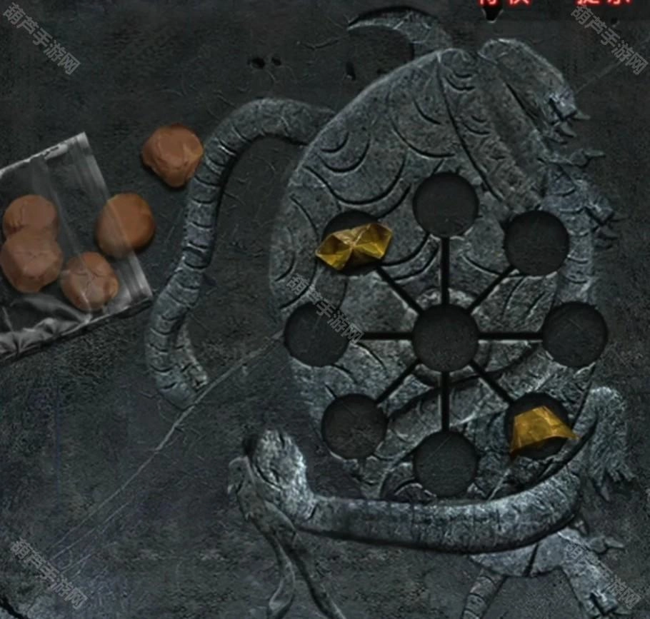 来到小庙二楼将符咒贴在右边石人脸上,获得小铜球和小船,后退一下查看左上角吊桥来到迷宫,直接选择地动仪将铜球放入就能开始调整了,就按照前面青铜鼎上图案提示将龙头和下面青蛙嘴调整到相同角度,注意这里不是按照龙头是按照龙尾的位置哦,因为龙在青蛙上面,青蛙就按照实际位置即可,调整完如上图提示传来石头摩擦的声音。
