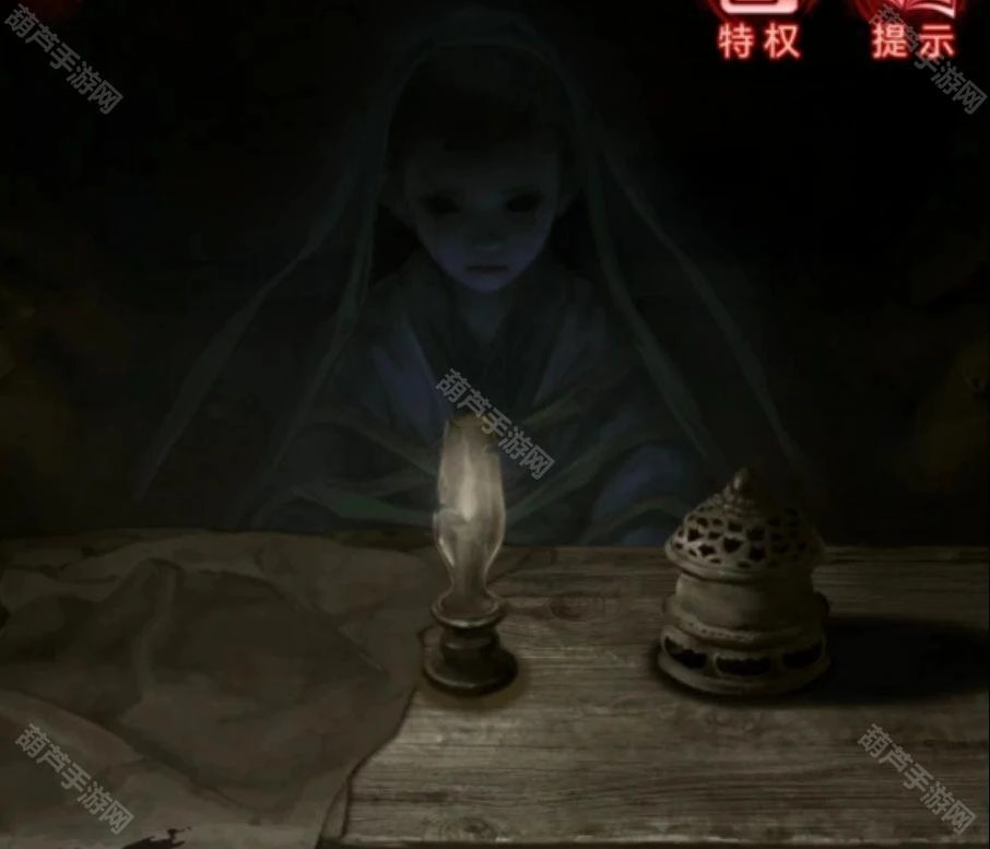 查看一下被扔在桌子上的书,第三页拿到一张画着六葬菩萨的金箔,上楼把金箔放在右边的神龛里,果然第二章拿到唢呐的才是小奚啊,自动吹奏后拿到一块布帛,来到小奚家,把熨斗秒表布帛都放在左边的桌子上就能开始熨烫了,这里记的要看左边秒表时间,依次是2秒换位、3秒换位、4秒换位、2秒换位,时间都正确的话就能拿到帛画了。