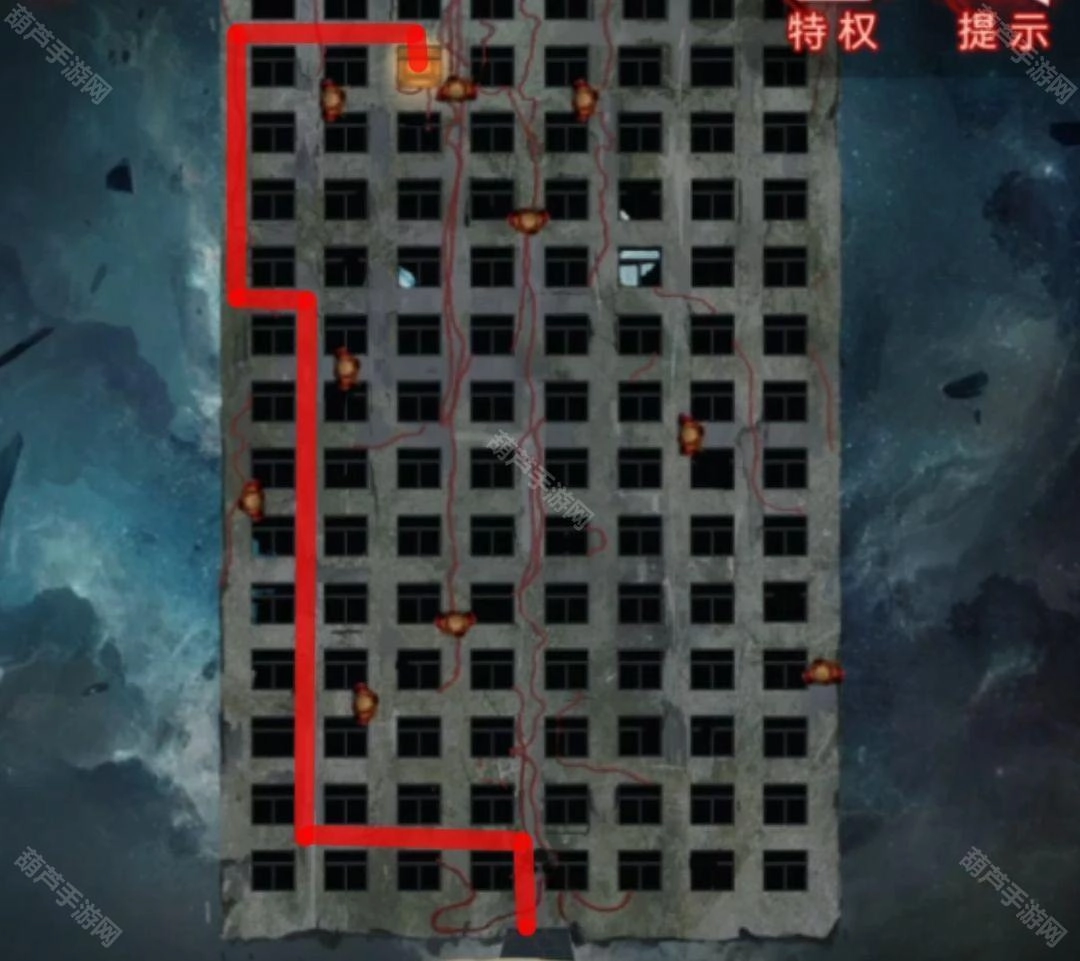 肖医生拿到铜镜后对石雕人右上角影子位置使用就能看到真实的大楼了,前往大楼发现有口舌分身看守,需要用唢呐指挥左右走过去到达黄色亮灯房间,这里米雪找了一条比较简单的路线,只需要注意不要踩到窗子掉下去就行不用管分身怎么走,到达后发现是一间很多人跪拜的房间,就叫跪拜间吧。