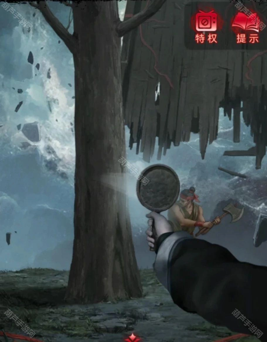 这里先别着急,我们先切换到肖医生那边,看他把铜镜扔进水柱里,然后再切回小奚,让她回去取那面铜镜。估计有小伙伴注意到之前迷宫里米雪漏掉了左上角一个很扁平的物件,当时因为出口前走不通,所以没去看。这次我们再走一遍迷宫到左上角,会发现那是一面镜子,暂时没有高能场景,不用害怕。之后再走到出口,就会发现能出去了。外面有个人在砍树,可他一直砍不到,感觉像是在砍空气似的。用铜镜帮他照一下,才发现他确实是在砍空气。等他把树砍倒后,我们就能顺着树走到船上了。对了,斧子也是愿力道具,最后这句话是不是看着有点眼熟?