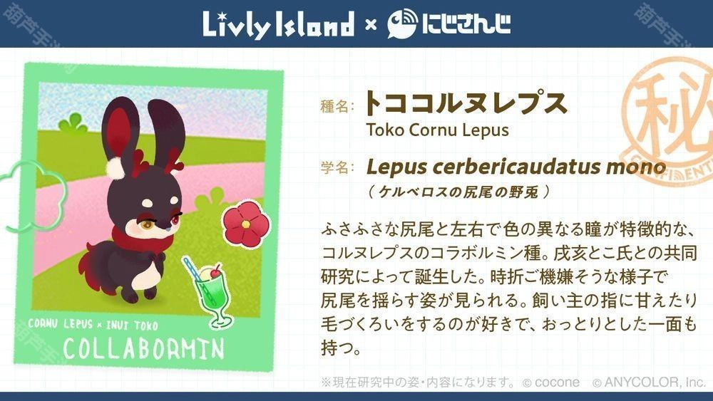 cocone株式会社运营的智能手机应用《宠物岛LivlyIsland》宣布,与虚拟主播团体「NIJISANJI」旗下的戌亥とこ、町田ちま、壱百満天原サロメ合作的联名活动将于2025年6月16日(周一)正式启动。