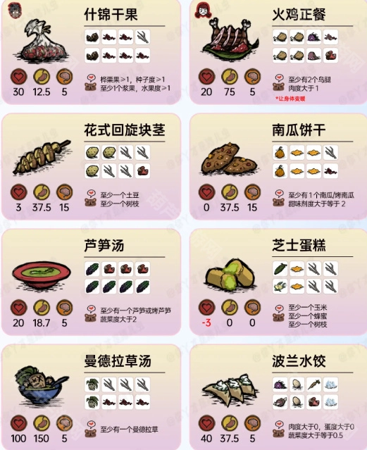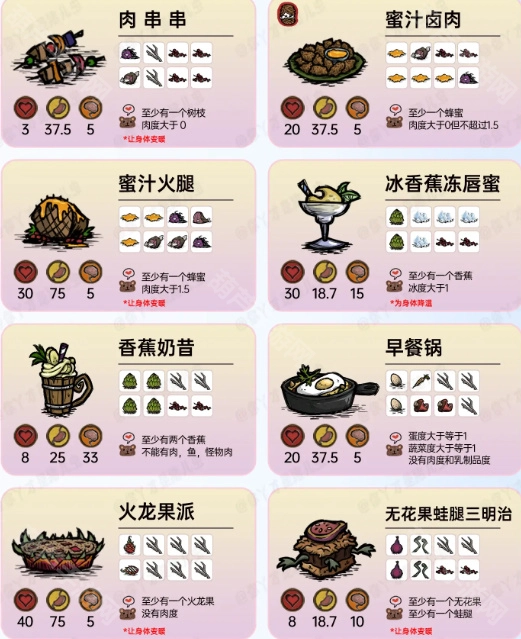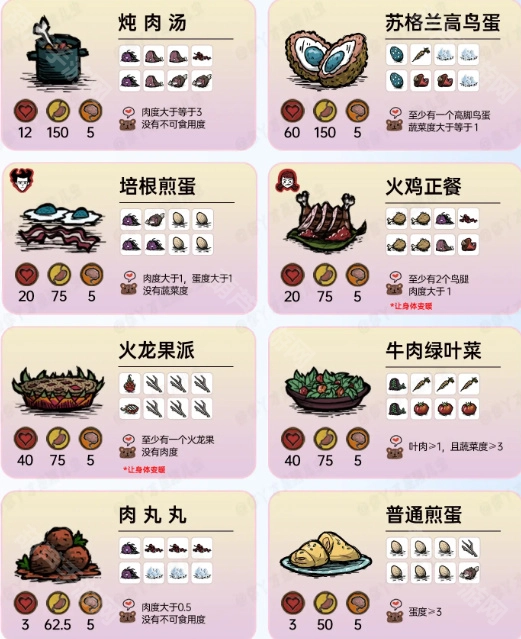 饥荒联机版里都有哪些食物配方呢?在饥荒这款游戏中,我们能够利用各式各样的材料制作出不同的食物,每种食物给我们带来的效果也存在差异。那么现在游戏里具体有哪些食物呢?这些食物的配方又分别是什么呢?接下来就和欢乐小编一同看看《饥荒联机版》的食谱大全吧。