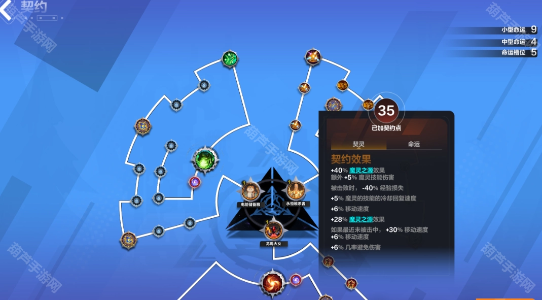 小型命运塞敏捷或者魔灵之源都能生效,更推荐选敏捷,能增伤还能加移速,性价比更高。