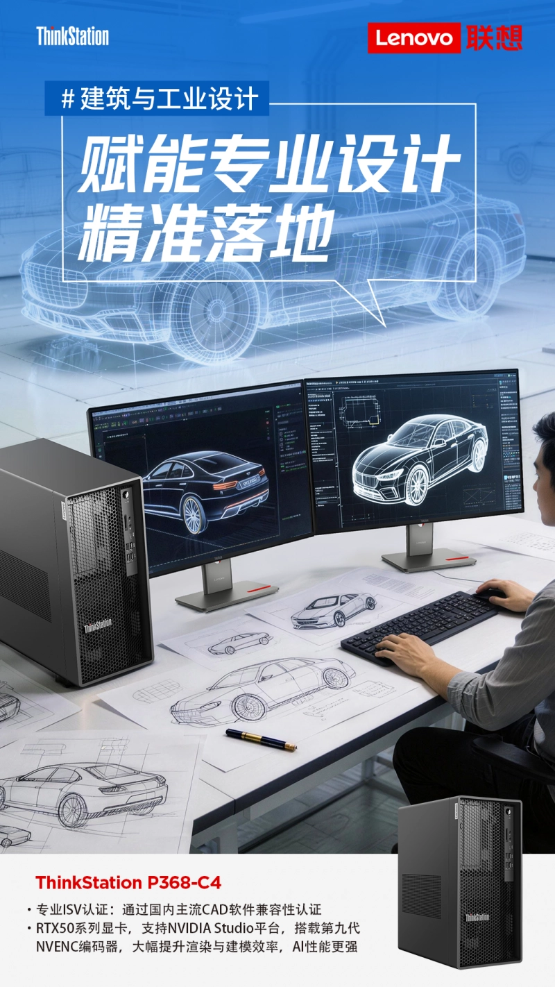 ThinkStation P368面向建筑设计公司、工业制图企业与工程设计单位,凭借专业配置攻克行业内大型项目处理、复杂建模渲染等痛点问题。该设备已通过国内主流CAD软件的ISV认证,认证范围覆盖AutoCAD、Solidworks等核心设计工具,能够确保专业软件运行既稳定又高效,有效避免设计过程中出现卡顿、崩溃等状况,从而保障创作流程的顺畅进行。