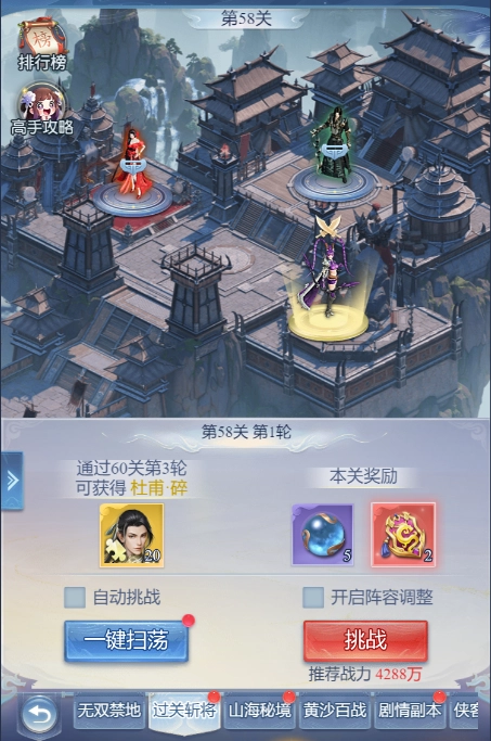 提供大量名将培养材料,奖励很多强力名将。怪伤害很高,特别是每一轮的第一关,要用刺客秒掉核心怪物。