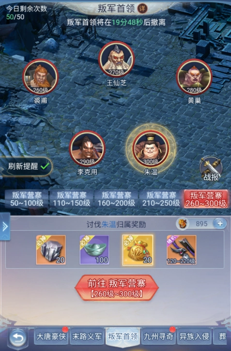 一、这款游戏中,打 BOSS 活动至关重要,是获取成长装备必不可少的活动。BOSS 等级范围从 50 级到 300 级,每隔半小时刷新一次。50 - 130 级的 BOSS 讨伐无需消耗任何物品,而 140 级及以上的 BOSS 讨伐则需要消耗讨伐令(元宝)。不过不用担心,无双禁地和主线任务产出的元宝,完全能够满足讨伐令的消耗需求,游戏内可实现元宝消耗与产出的自循环。