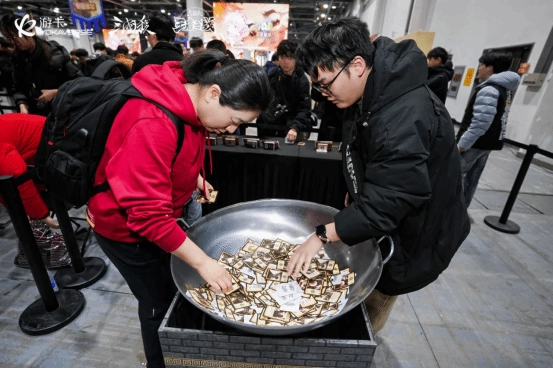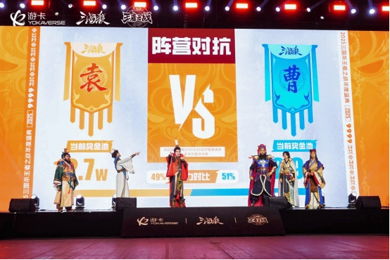 也就是说,今年的年度盛典绝非简单的“打牌”活动。游卡官方通过精心策划,让现场两批玩家迅速凝聚成各自阵营,共同沉浸在官渡之战波澜壮阔的历史场景中。此外,丰富多元的玩法设计让活动内容更加充实,几乎每位参与者都能在紧张对战之余,离开座位去体验新乐趣,以独特方式为己方阵营贡献力量。